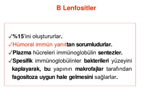✓Hümoral immün yanıttan sorumludurlar.