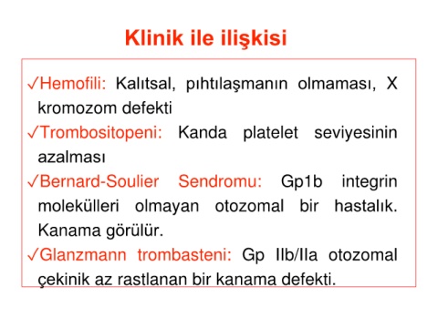 ✓Glanzmann trombasteni: Gp IIb/IIa otozomal