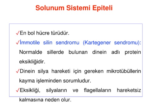 ✓Eksikliği, silyaların ve flagellaların hareketsiz