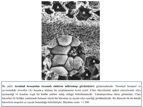 Bu şekil, terminal bronşiolun taramalı elektron mikroskop görüntüsünü göstermektedir. Terminal bronşiol ve