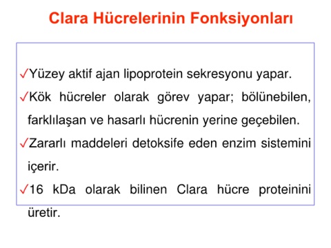 ✓16 kDa olarak bilinen Clara hücre proteinini