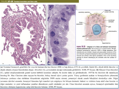 diğer enzimler; ve yerel inflamatuar yanıtları düzenleyen çeşitli sitokinler yer alır. Clara hücreleri arasında ayrıca, bronşiyol epitelindeki tüm