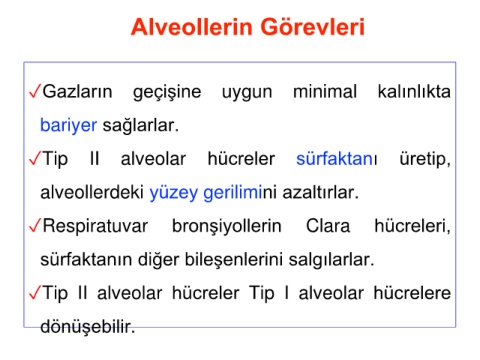 ✓Tip II alveolar hücreler sürfaktanı üretip,