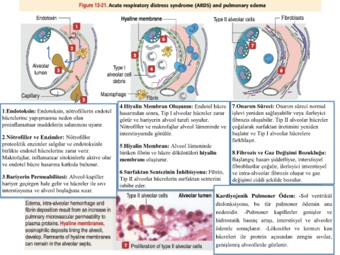 3.Bariyerin Permeabilitesi: Alveol-kapiller Tip II alveolar hücrelerin surfaktan sentezini değişimi ciddi şekilde bozulur.