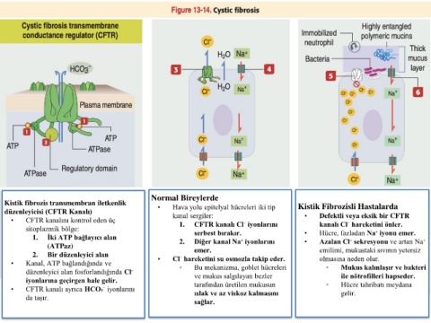 • CFTR kanalı ayrıca HCO₃⁻ iyonlarını tarafından üretilen mukusun ◦ Hücre tahribatı meydana