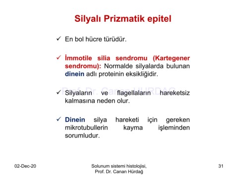 02-Dec-20 Solunum sistemi histolojisi, 31