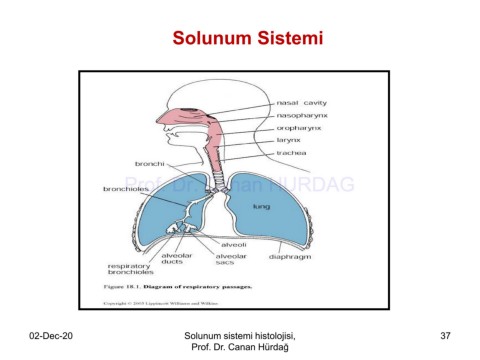 Solunum Sistemi Prof. Dr. Canan HURDAG 02-Dec-20 Solunum sistemi histolojisi, 37 Prof. Dr. Canan Hürdağ