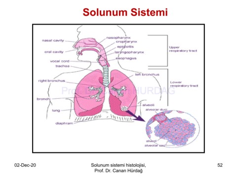 Solunum Sistemi Prof. Dr. Canan HURDAG 02-Dec-20 Solunum sistemi histolojisi, 52 Prof. Dr. Canan Hürdağ