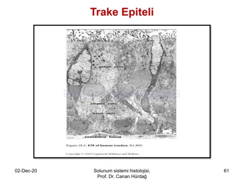 Trake Epiteli Prof. Dr. Canan HURDAG 02-Dec-20 Solunum sistemi histolojisi, 61 Prof. Dr. Canan Hürdağ
