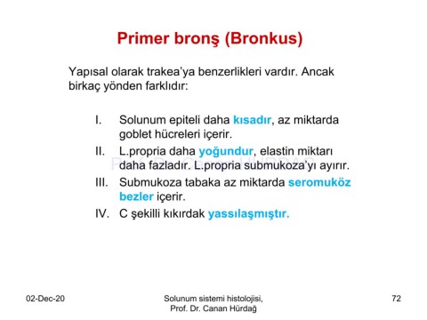 02-Dec-20 Solunum sistemi histolojisi, 72