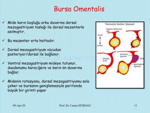 ✓ Midenin rotasyonu, dorsal mezogastriyumu sola