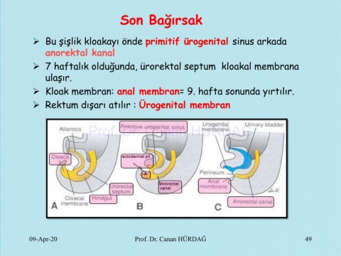 ➢ 7 haftalık olduğunda, ürorektal septum kloakal membrana