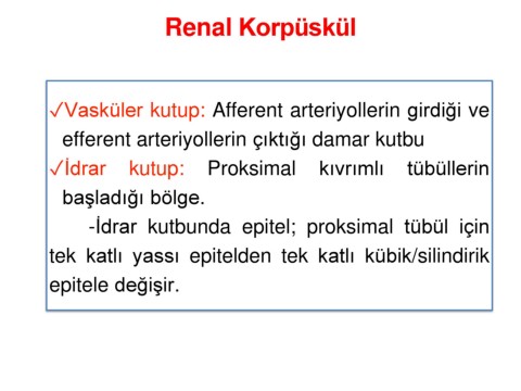 ✓Vasküler kutup: Afferent arteriyollerin girdiği ve