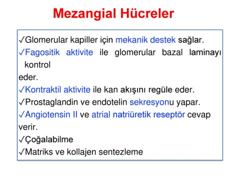 ✓Glomerular kapiller için mekanik destek sağlar.
