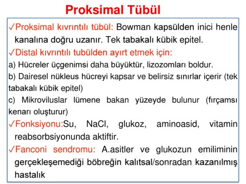 ✓Fonksiyonu:Su, NaCl, glukoz, aminoasid, vitamin