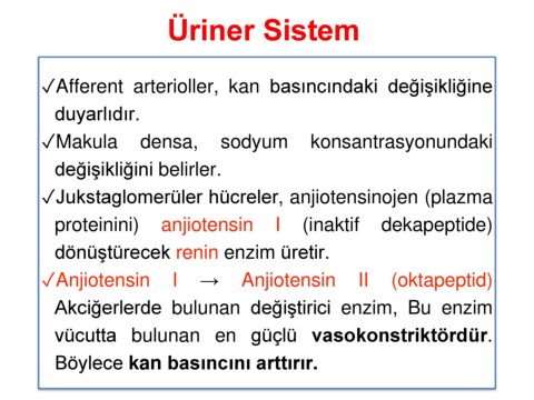 ✓Afferent arterioller, kan basıncındaki değişikliğine
