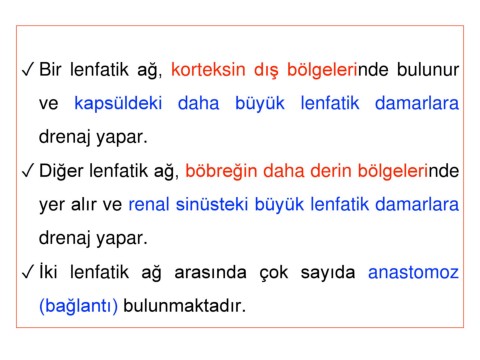yer alır ve renal sinüsteki büyük lenfatik damarlara