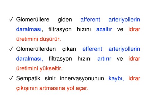 ✓ Glomerüllerden çıkan efferent arteriyollerin