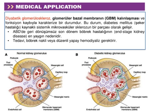 Diyabetik glomerüloskleroz, glomerüler bazal membranın (GBM) kalınlaşması ve