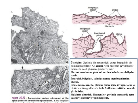 Plakların altındaki filamentler, gerilmiş mesanede aşırı