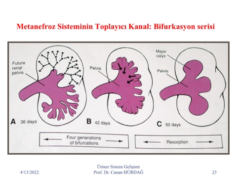 Metanefroz Sisteminin Toplayıcı Kanal: Bifurkasyon serisi Üriner Sistem Gelişimi 4/13/2022 Prof. Dr. Canan HÜRDAĞ 23