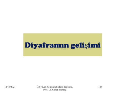 Diyaframın gelişimi Prof. Dr. Canan HURDAG 12/15/2021 Üst ve Alt Solunum Sistemi Gelişimi, 128 Prof. Dr. Canan Hürdağ