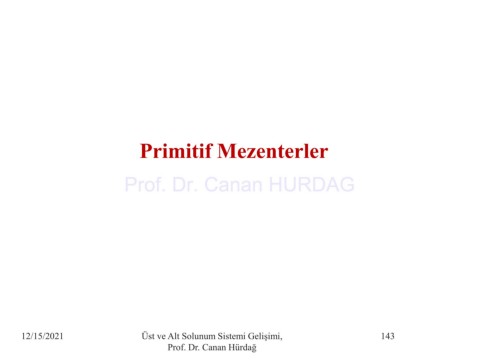 Primitif Mezenterler Prof. Dr. Canan HURDAG 12/15/2021 Üst ve Alt Solunum Sistemi Gelişimi, 143 Prof. Dr. Canan Hürdağ
