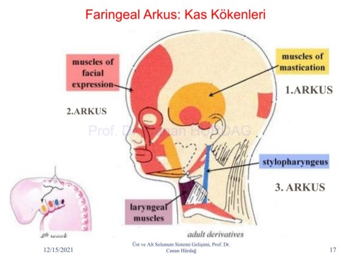Faringeal Arkus: Kas Kökenleri 1.ARKUS 2.ARKUS Prof. Dr. Canan HURDAG 3. ARKUS Üst ve Alt Solunum Sistemi Gelişimi, Prof. Dr. 12/15/2021 Canan Hürdağ 17