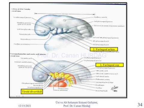 2. Faringeal arkus Prof. Dr. Canan HURDAG 2. Faringeal cep Tiroid divertikül Üst ve Alt Solunum Sistemi Gelişimi, 12/15/2021 Prof. Dr. Canan Hürdağ 34