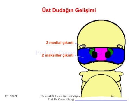 Üst Dudağın Gelişimi 2 medial çıkıntı Prof. Dr. Canan HURDAG 2 maksiller çıkıntı 12/15/2021 Üst ve Alt Solunum Sistemi Gelişimi, 44 Prof. Dr. Canan Hürdağ