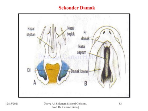 Sekonder Damak Prof. Dr. Canan HURDAG 12/15/2021 Üst ve Alt Solunum Sistemi Gelişimi, 53 Prof. Dr. Canan Hürdağ