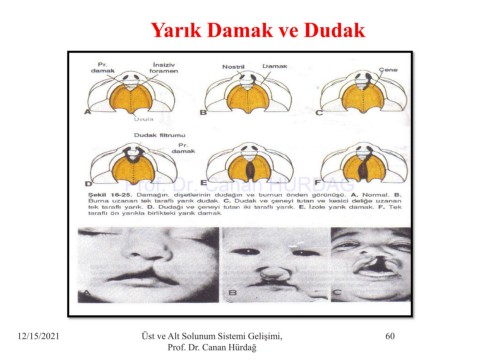Yarık Damak ve Dudak Prof. Dr. Canan HURDAG 12/15/2021 Üst ve Alt Solunum Sistemi Gelişimi, 60 Prof. Dr. Canan Hürdağ
