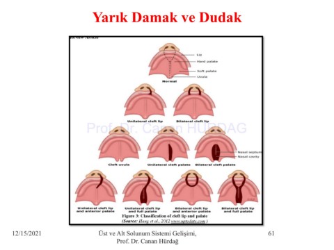 Yarık Damak ve Dudak Prof. Dr. Canan HURDAG 12/15/2021 Üst ve Alt Solunum Sistemi Gelişimi, 61 Prof. Dr. Canan Hürdağ
