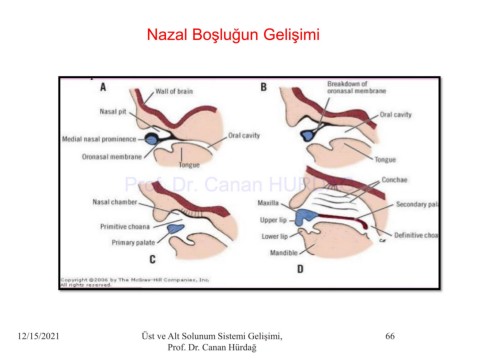 Nazal Boşluğun Gelişimi Prof. Dr. Canan HURDAG 12/15/2021 Üst ve Alt Solunum Sistemi Gelişimi, 66 Prof. Dr. Canan Hürdağ