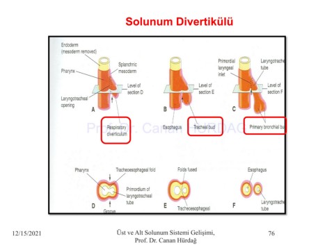 Solunum Divertikülü Prof. Dr. Canan HURDAG 12/15/2021 Üst ve Alt Solunum Sistemi Gelişimi, 76 Prof. Dr. Canan Hürdağ
