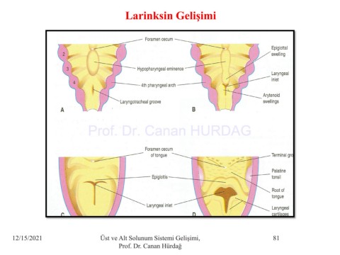 Larinksin Gelişimi Prof. Dr. Canan HURDAG 12/15/2021 Üst ve Alt Solunum Sistemi Gelişimi, 81 Prof. Dr. Canan Hürdağ