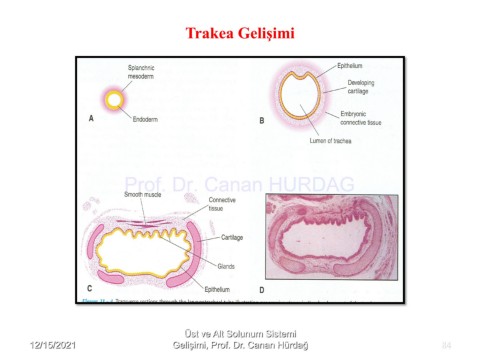 Trakea Gelişimi Prof. Dr. Canan HURDAG Üst ve Alt Solunum Sistemi 12/15/2021 Gelişimi, Prof. Dr. Canan Hürdağ 84