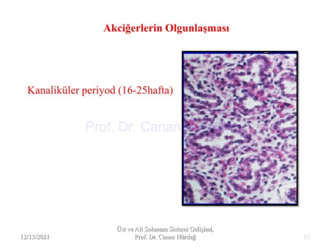 Akciğerlerin Olgunlaşması Kanaliküler periyod (16-25hafta) Prof. Dr. Canan HURDAG Üst ve Alt Solunum Sistemi Gelişimi, 12/15/2021 Prof. Dr. Canan Hürdağ 95