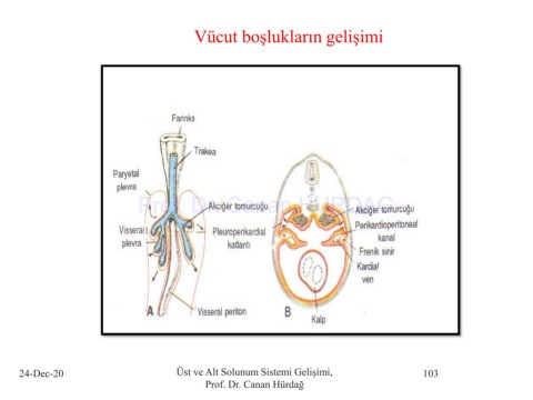Vücut boşlukların gelişimi Prof. Dr. Canan HURDAG 24-Dec-20 Üst ve Alt Solunum Sistemi Gelişimi, 103 Prof. Dr. Canan Hürdağ
