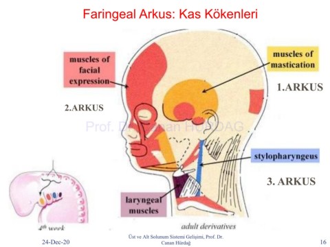 Faringeal Arkus: Kas Kökenleri 1.ARKUS 2.ARKUS Prof. Dr. Canan HURDAG 3. ARKUS Üst ve Alt Solunum Sistemi Gelişimi, Prof. Dr. 24-Dec-20 Canan Hürdağ 16