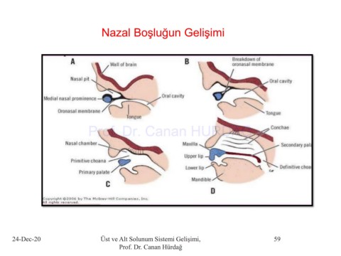 Nazal Boşluğun Gelişimi Prof. Dr. Canan HURDAG 24-Dec-20 Üst ve Alt Solunum Sistemi Gelişimi, 59 Prof. Dr. Canan Hürdağ