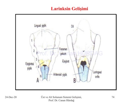 Larinksin Gelişimi Prof. Dr. Canan HURDAG 24-Dec-20 Üst ve Alt Solunum Sistemi Gelişimi, 74 Prof. Dr. Canan Hürdağ