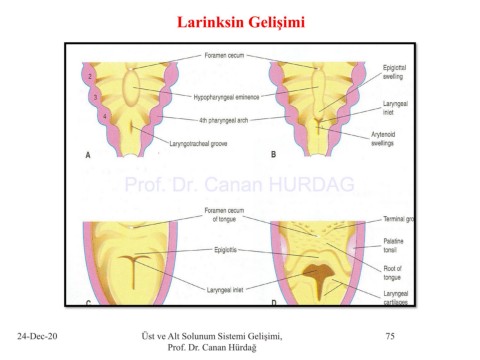 Larinksin Gelişimi Prof. Dr. Canan HURDAG 24-Dec-20 Üst ve Alt Solunum Sistemi Gelişimi, 75 Prof. Dr. Canan Hürdağ