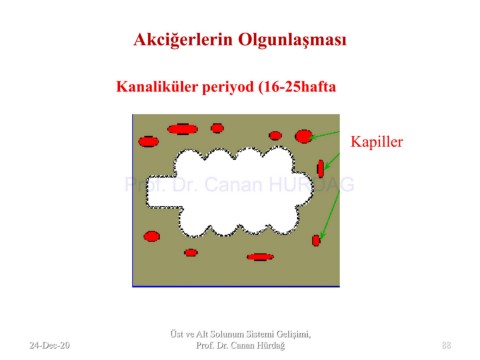 Akciğerlerin Olgunlaşması Kanaliküler periyod (16-25hafta) Kapiller Prof. Dr. Canan HURDAG Üst ve Alt Solunum Sistemi Gelişimi, 24-Dec-20 Prof. Dr. Canan Hürdağ 88