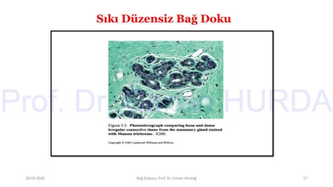 Sıkı Düzensiz Bağ Doku Prof. Dr. Canan HURDA 28.03.2020 Bağ Dokusu, Prof. Dr. Canan Hürdağ 17