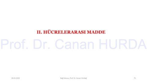 II. HÜCRELERARASI MADDE Prof. Dr. Canan HURDA 28.03.2020 Bağ Dokusu, Prof. Dr. Canan Hürdağ 75