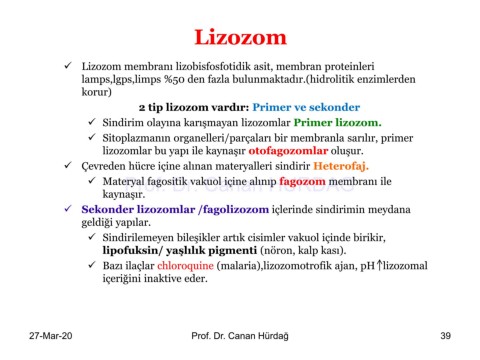 2 tip lizozom vardır: Primer ve sekonder