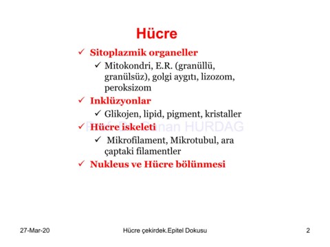 27-Mar-20 Hücre çekirdek.Epitel Dokusu 2