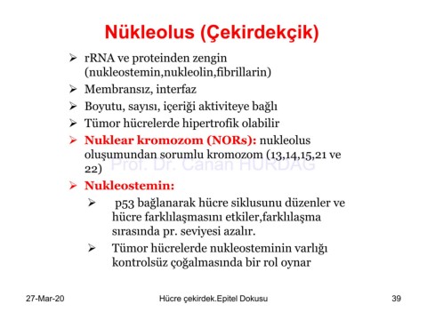 27-Mar-20 Hücre çekirdek.Epitel Dokusu 39