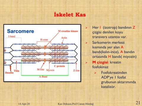➢ M çizgisi: kreatin